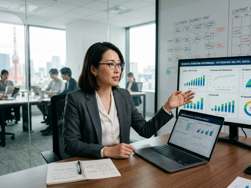 デジタルマーケティングコンサルタントとは、WebサイトやSNS、広告、データ分析といった多様なデジタルチャネルを横断的に活用し、クライアント企業のマーケティング課題を解決に導く専門家です。