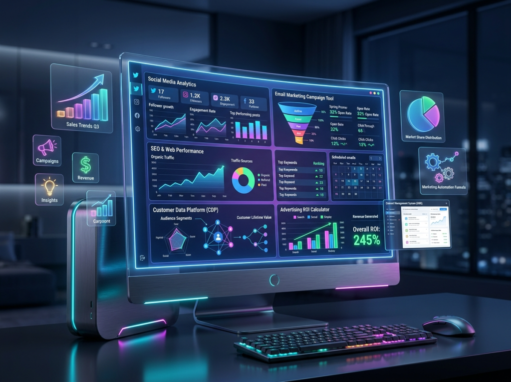 デジタルマーケティングツールとは、WebサイトやSNS、広告などのデジタルチャネルにおけるマーケティング活動を効率化・自動化し、その効果を最大化するためのソフトウェアやシステムのことです。